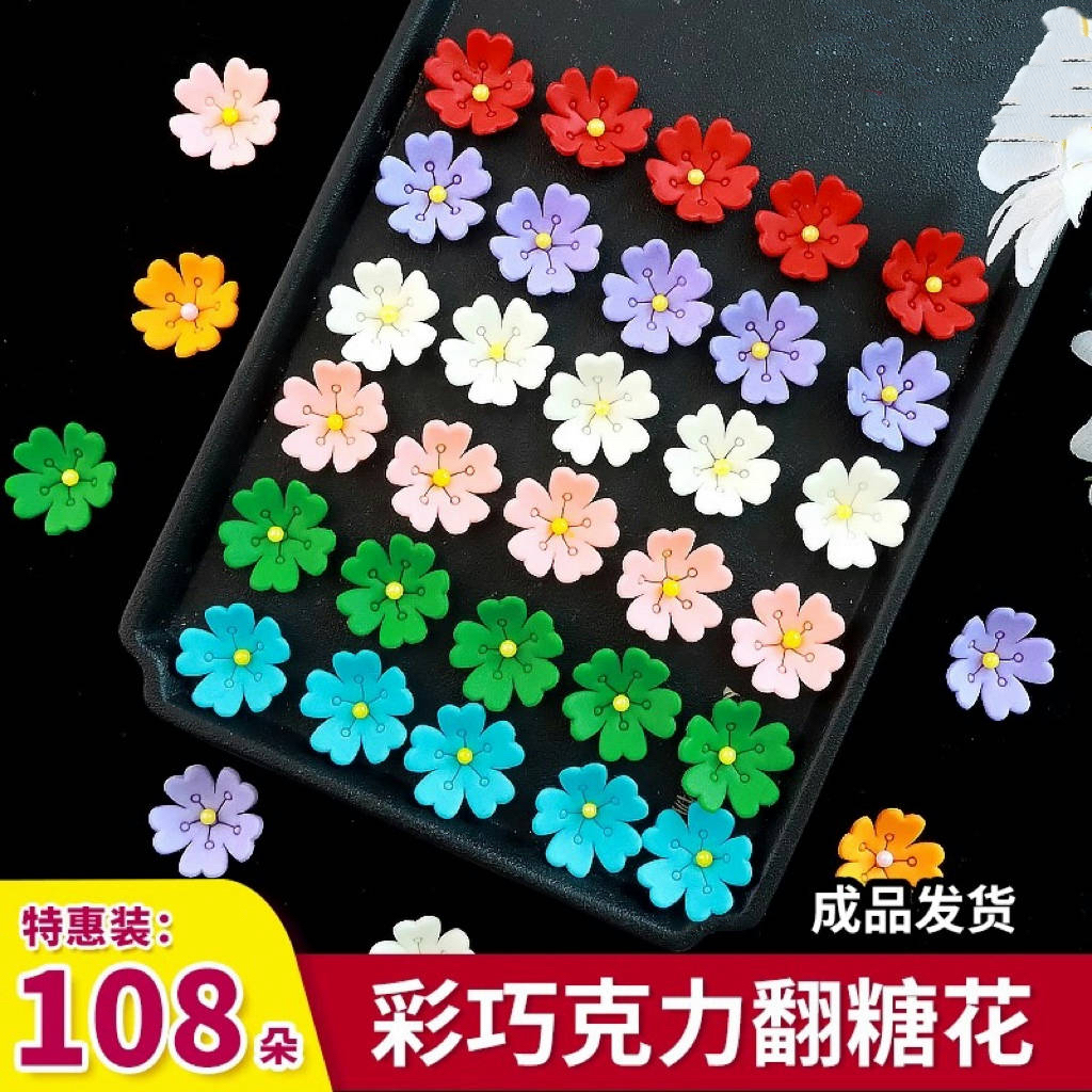 彩色翻糖小花蛋糕装饰摆件立体成品巧克力樱花插件冰淇淋点缀小料