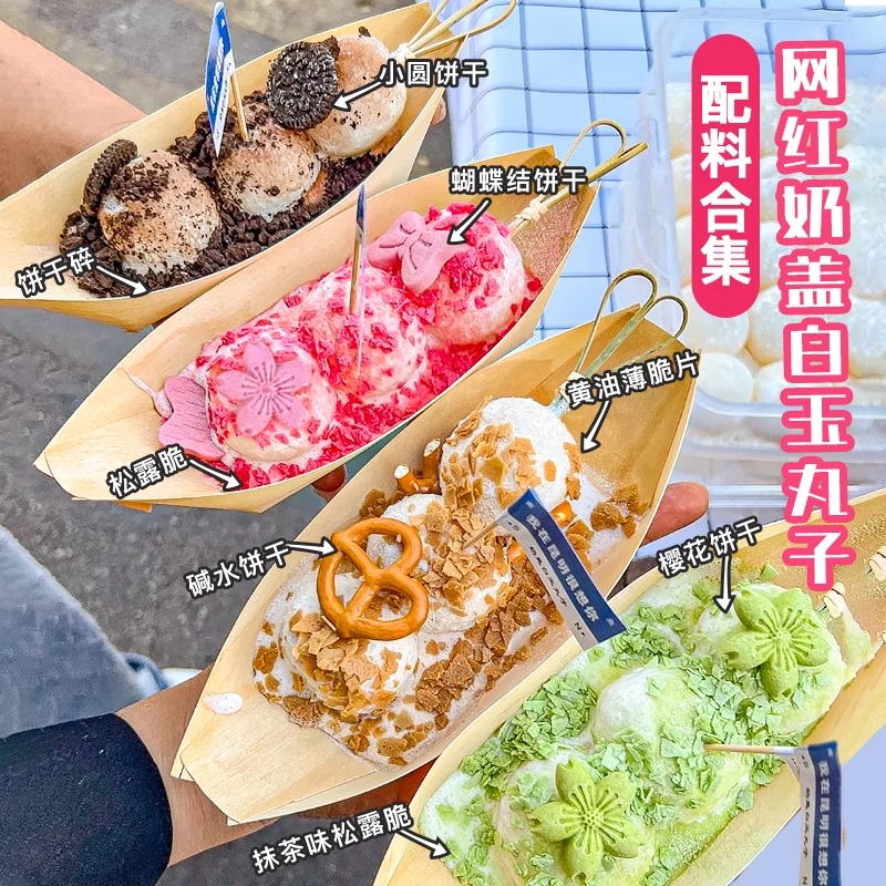 网红白玉丸子商用小料摆摊配料花朵饼干摆件糯米糍粑蛋糕装饰点缀