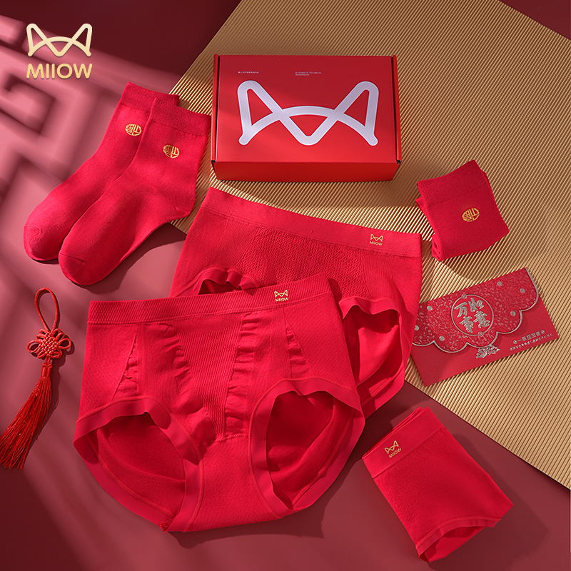 MiiOW/猫人优品【本命年红运】女士红色袜子礼盒装塑身7A级抑菌底裆