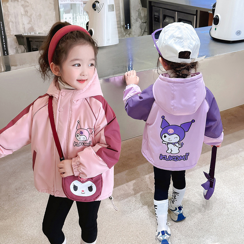 女童外套秋冬季2025新款加绒加厚中小童风衣秋库洛米秋装连帽夹克