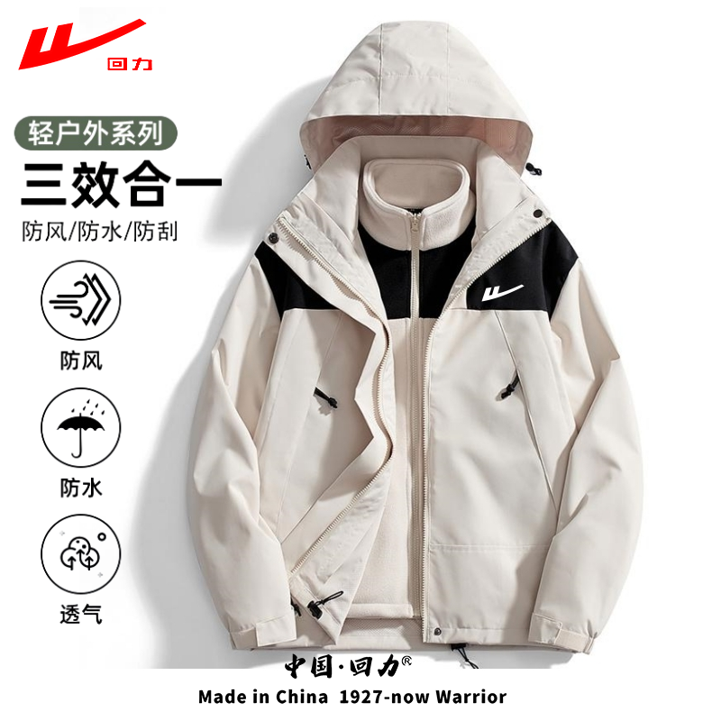 回力国潮三合一冲锋夹克男女同款秋冬季休闲外套潮牌ins登山衣服