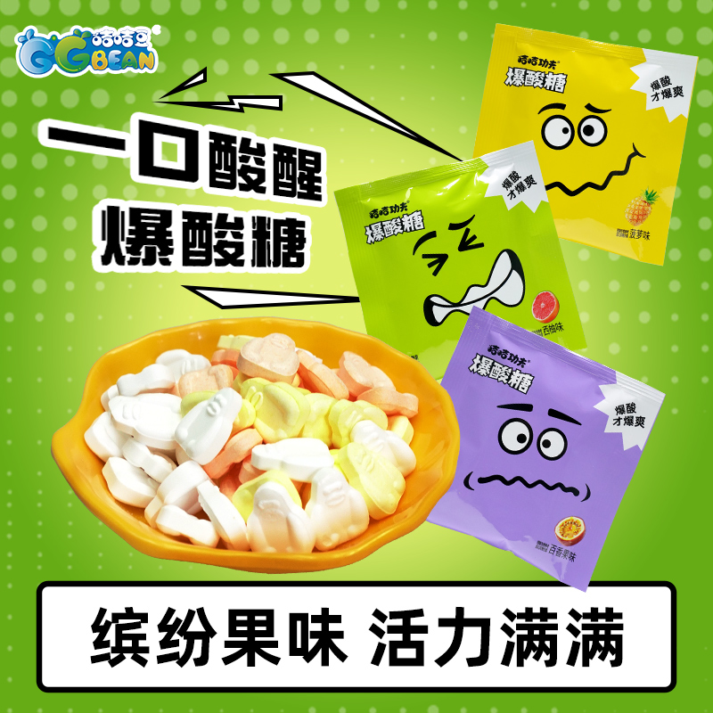 咭咭功夫菠萝味西柚百香果味爆酸糖片猩猩立醒解馋压片清爽口味