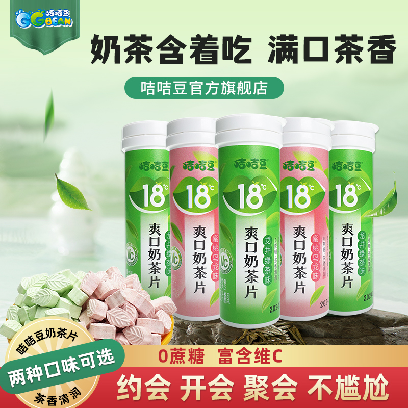 咭咭豆蜜桃乌龙味龙井绿茶奶茶片压片糖果