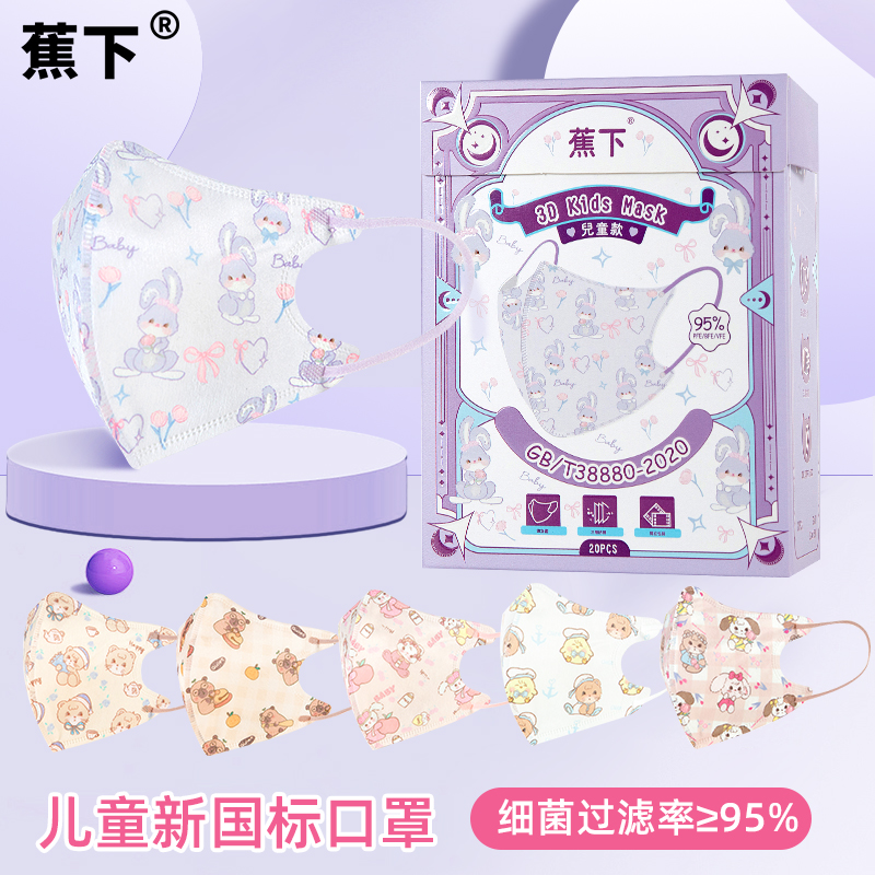 蕉下新国标儿童口罩独立装3D立体一次性透气男女童学生防飞沫口罩