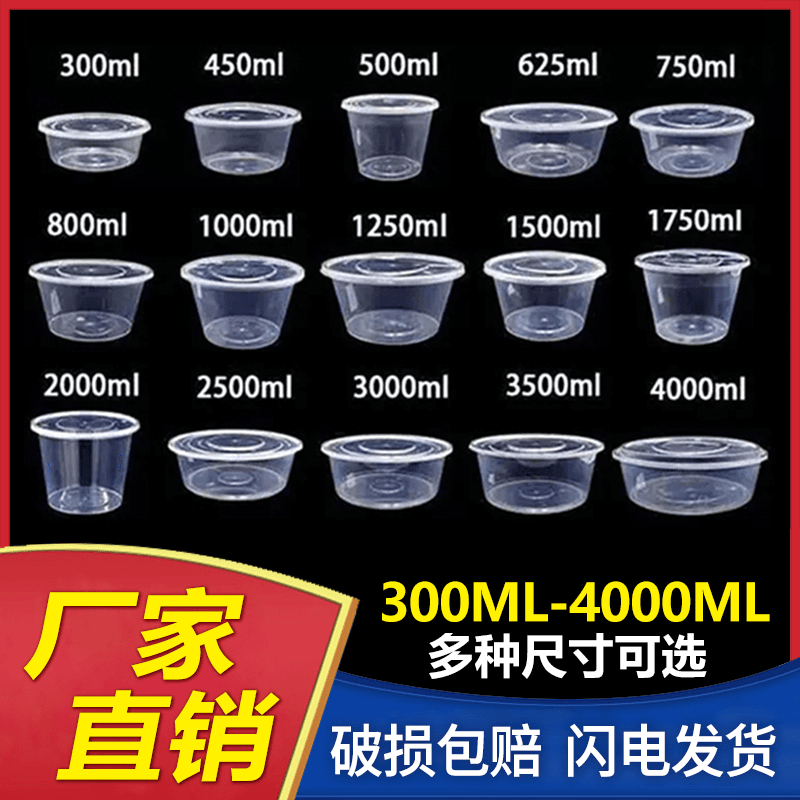 一次性打包盒塑料碗外卖饭盒圆形家用快餐餐盒透明加厚一次性餐碗