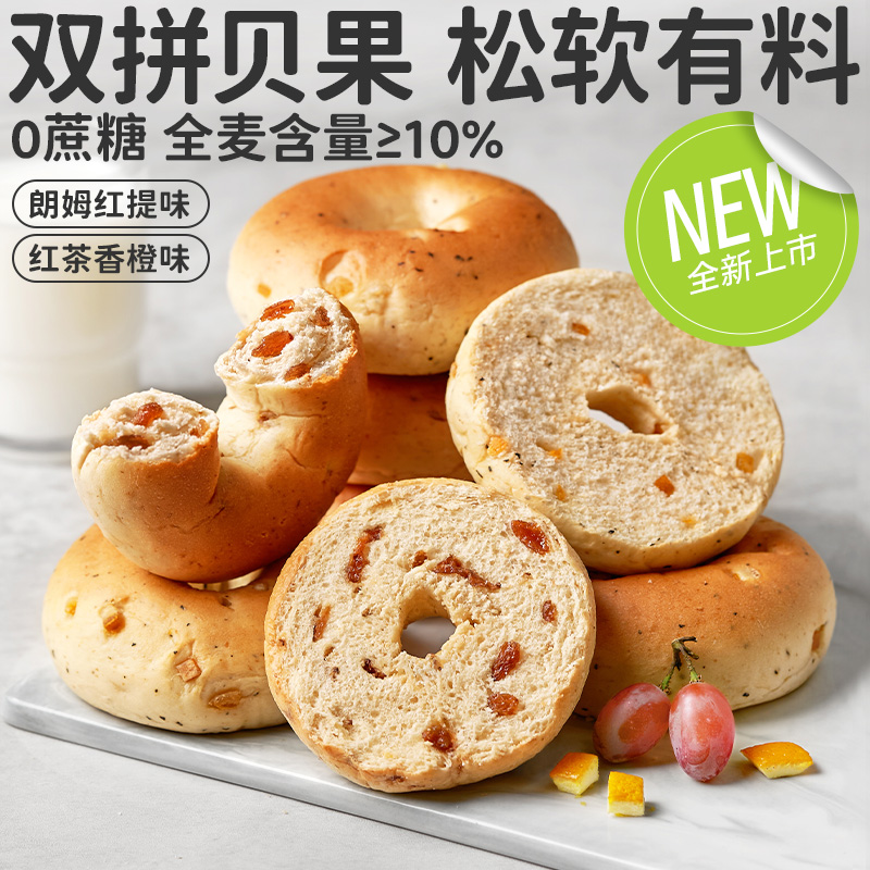 田园主义全麦贝果红茶香橙整箱0蔗糖三明治健身早餐代餐饱腹面包