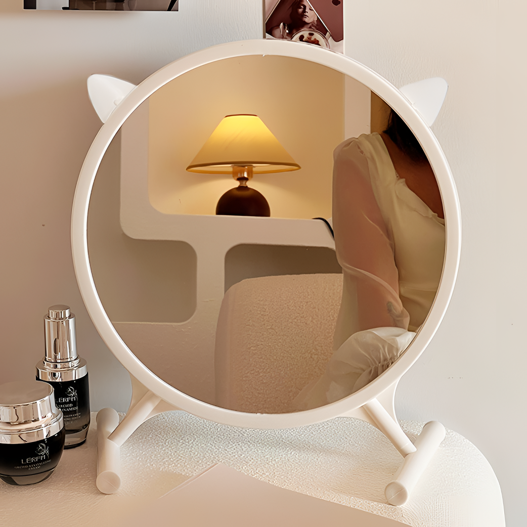 猫耳化妆镜台式卧室梳妆台镜子智能桌面ins可爱高清网红梳妆镜