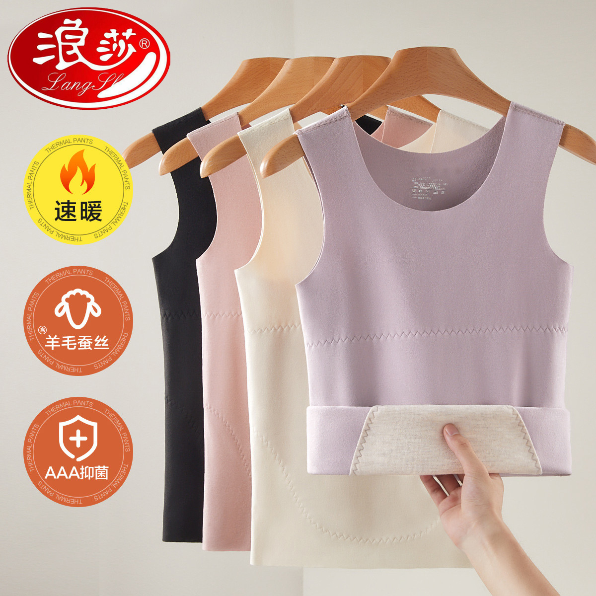 浪莎无痕保暖背心女加绒双面德绒秋冬内搭吊带贴身内穿加厚内衣女