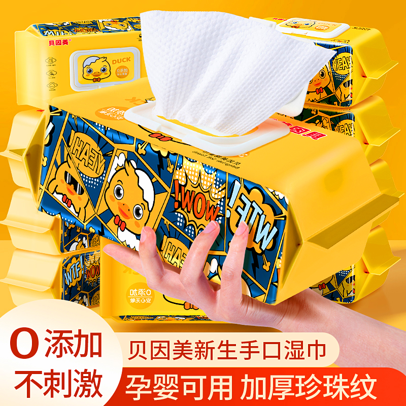 贝因美小黄鸭湿巾婴幼儿清洁湿纸巾手口湿巾珍珠纹加大加厚亲肤