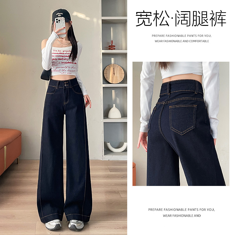 乔栈丹宁蓝微喇阔腿牛仔裤女款2025新款高腰显瘦遮肉直筒裤子春秋