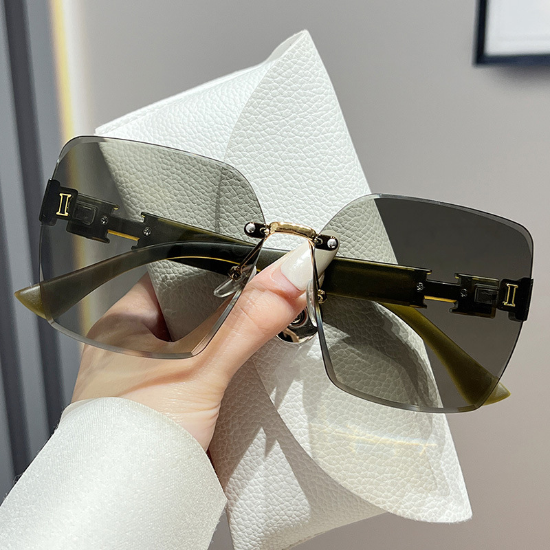 新款太阳镜女士高级感无框太阳眼镜女款防紫外线开车墨镜大框圆脸