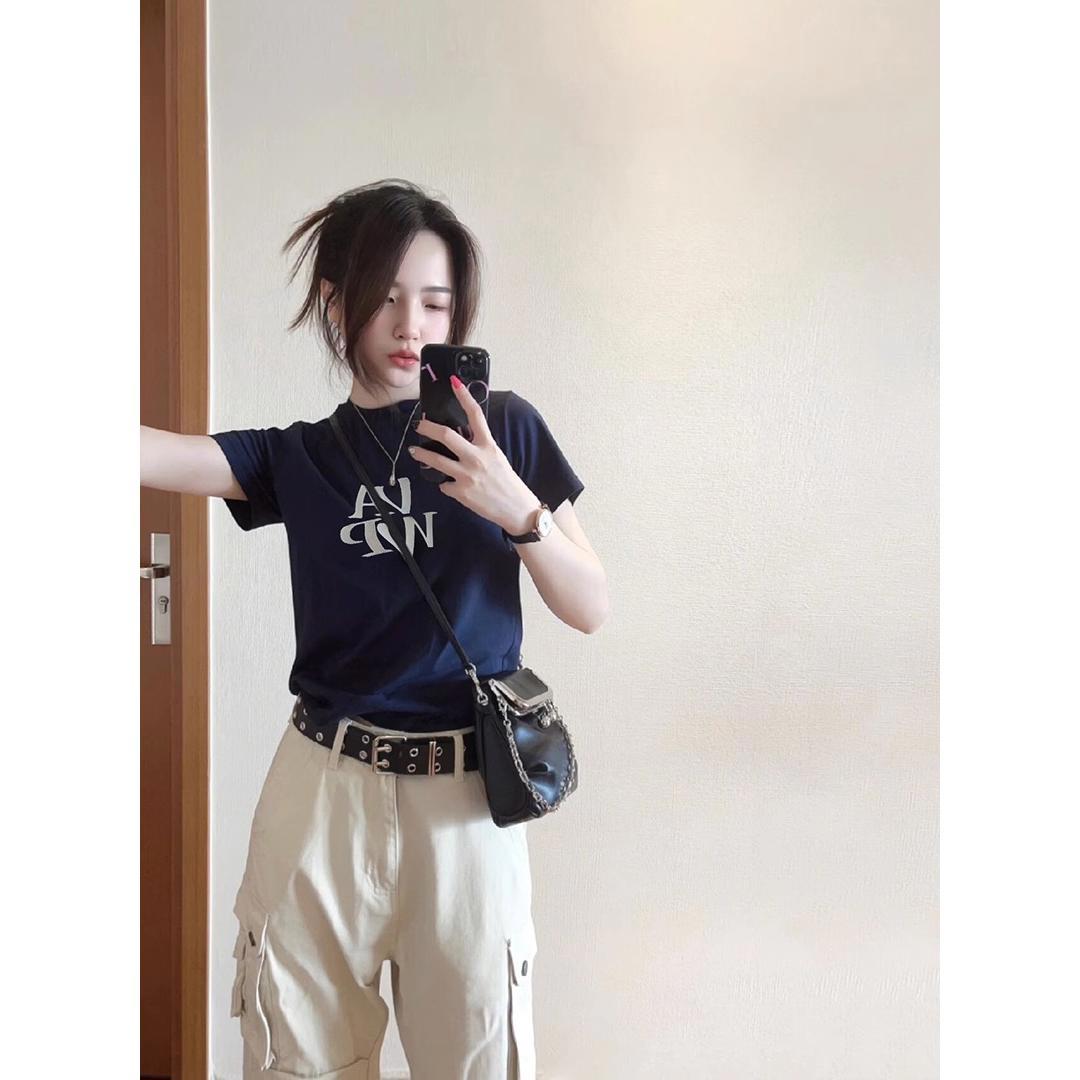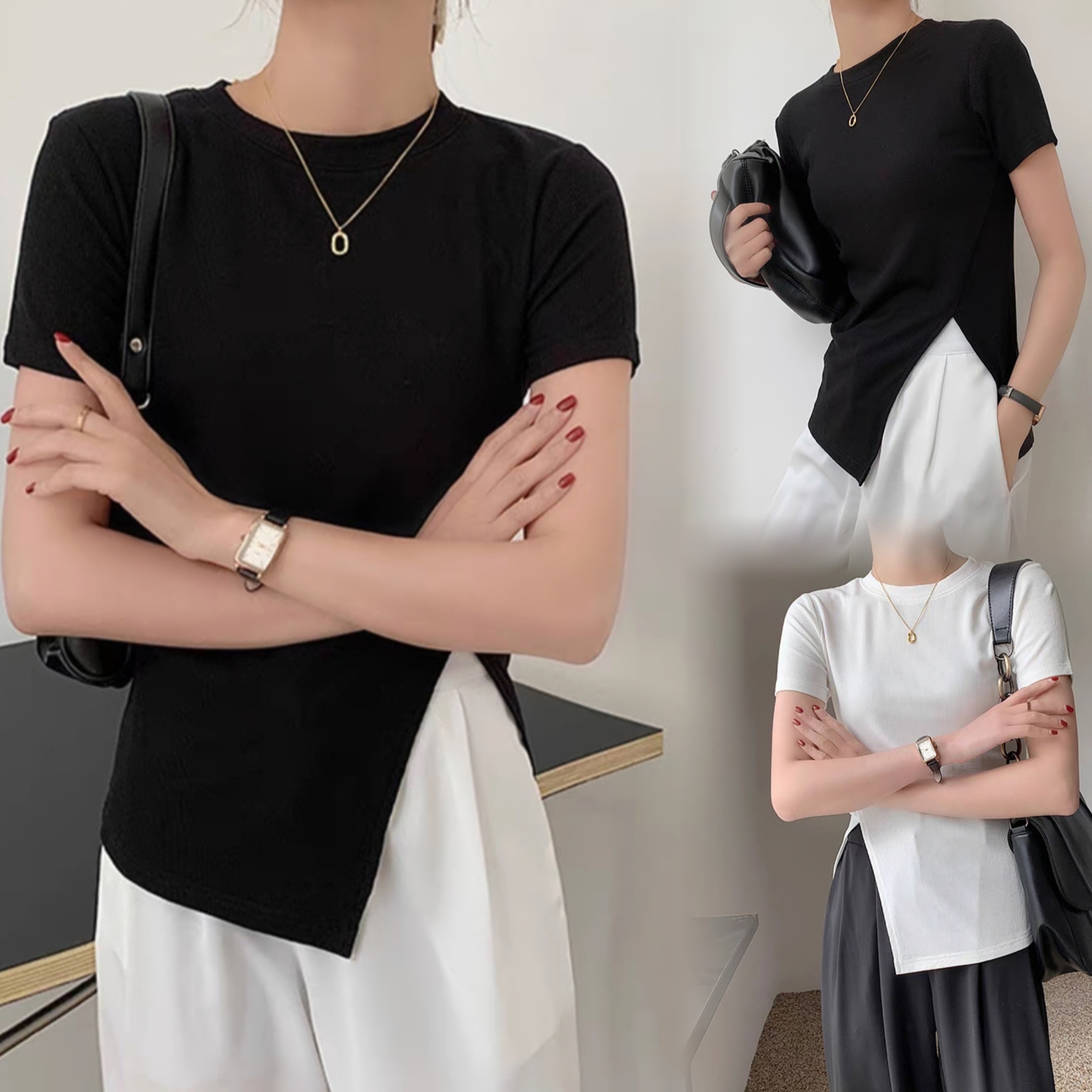 2025年新款别致高级感开叉不规则黑色短袖t恤短款上衣女夏季ins潮