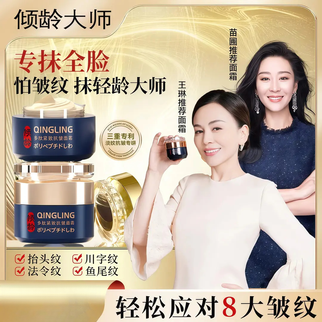 【明星推荐】倾龄大师多肽抗皱面霜淡化川字纹抬头紧致纹苗圃推荐