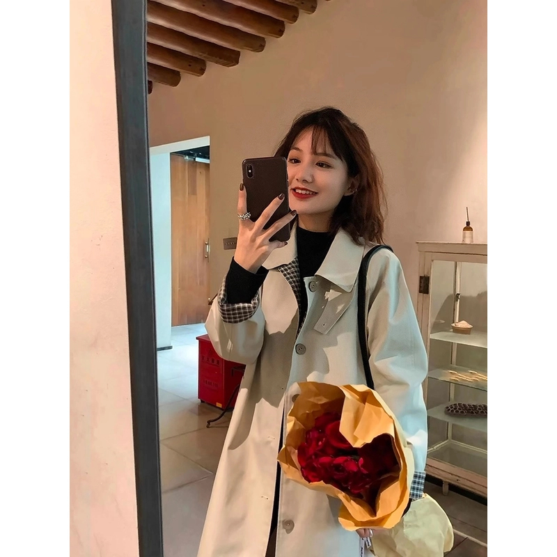 风衣外套女2025年新款春秋中长款小个子韩系格纹爆款chic早秋大衣