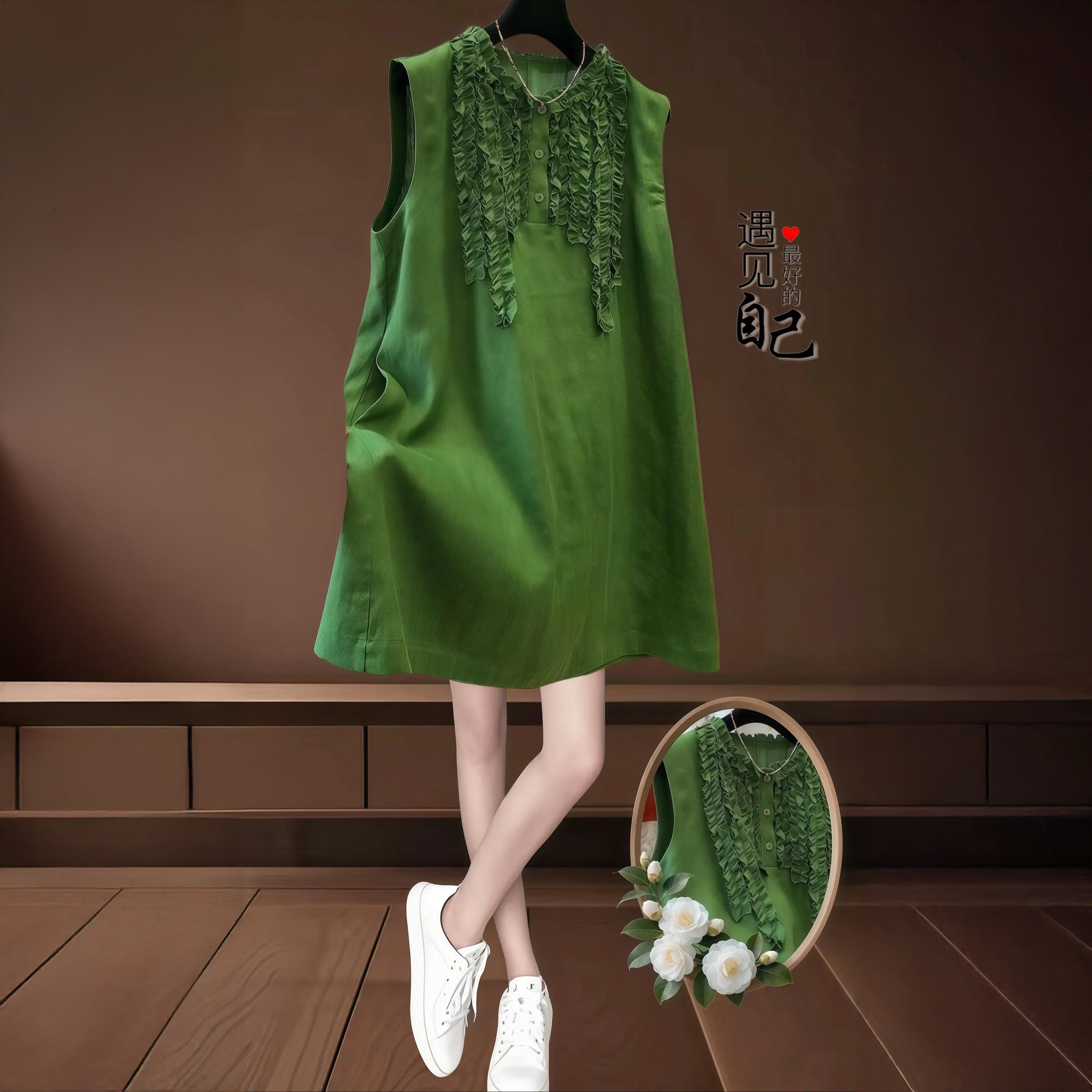 夏季新款小众设计感木耳边背心连衣裙女高端时尚重工无袖中长裙子