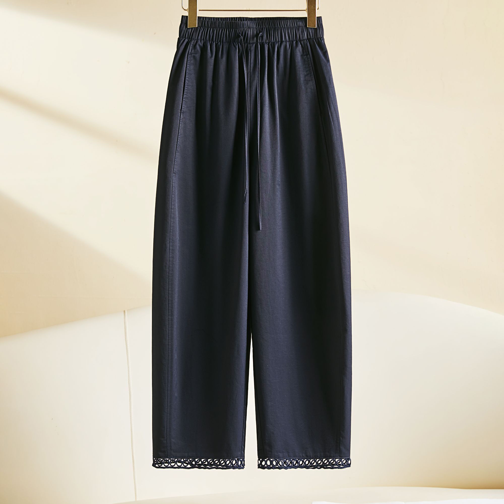 依梅儿2025夏季新款高品质高腰休闲百搭显瘦天丝亚麻直筒裤5820