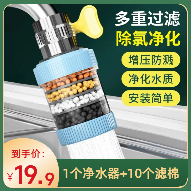 【2个过滤器+10个滤棉】厨房通用安装防溅水龙头花洒过滤器延伸器