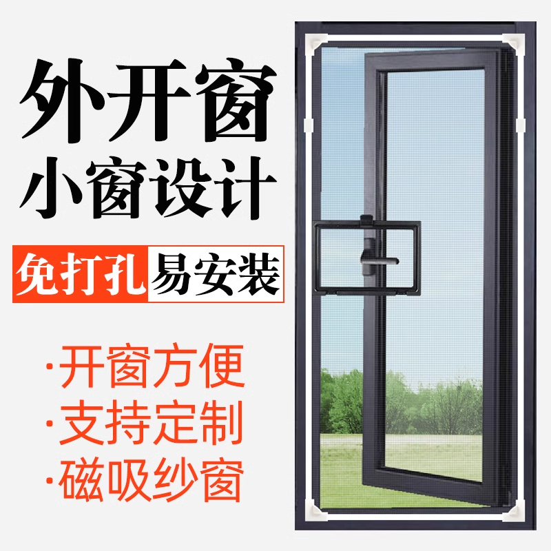 外开窗纱窗网自装磁吸纱网小窗口窗户定制网沙窗自粘家用把手推拉