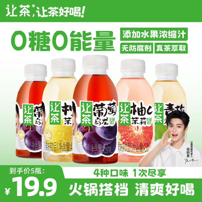 让茶 无糖果茶饮料葡萄乌龙茶青梅柠檬柚子茶含VC清爽解渴中秋5瓶