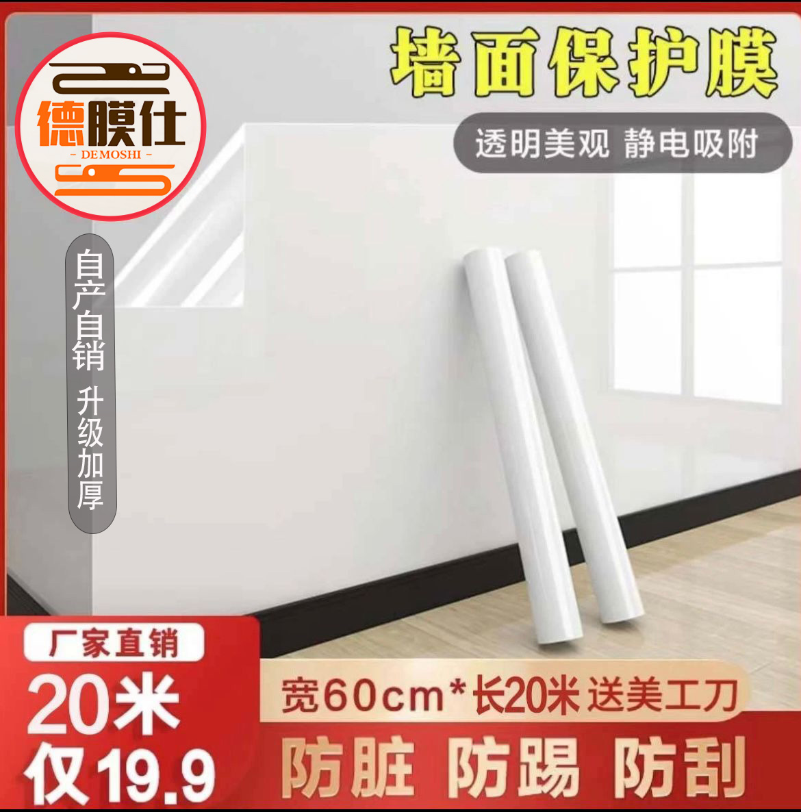 【德膜仕】(20米送美工刀)墙面保护膜静电防脏防潮透明墙贴儿童画画