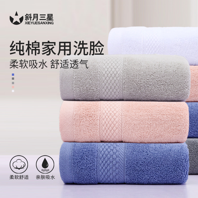 斜月三星毛巾纯棉洗脸洗澡家用成人男女士全棉柔软吸水面巾情侣