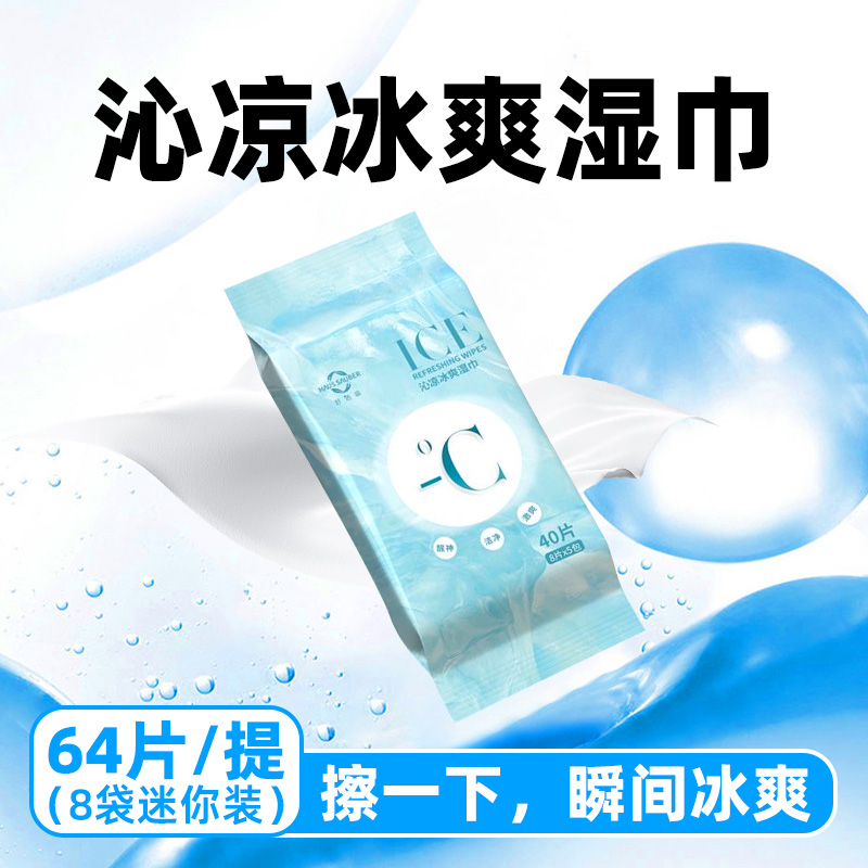 好洁森薄荷清凉湿巾冷感冰爽持久凉爽无酒精军训清凉降温止汗清洁