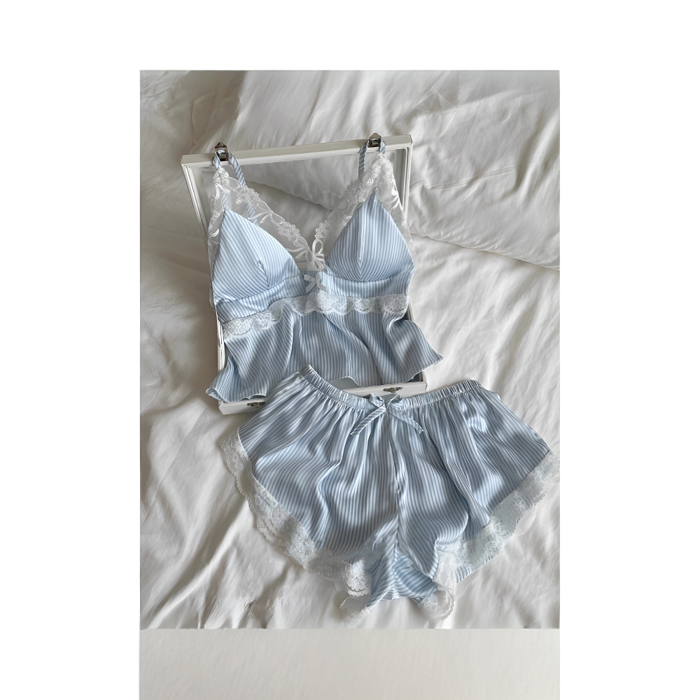 冰丝吊带睡衣女夏季2025新款高级轻奢风少女性感蕾丝边薄款套装