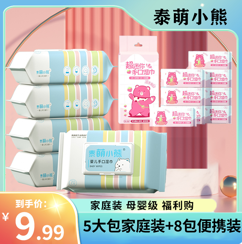 【5大包+8小包】泰萌小熊 婴幼手口湿纸巾 买5大包送8包(1提)主链