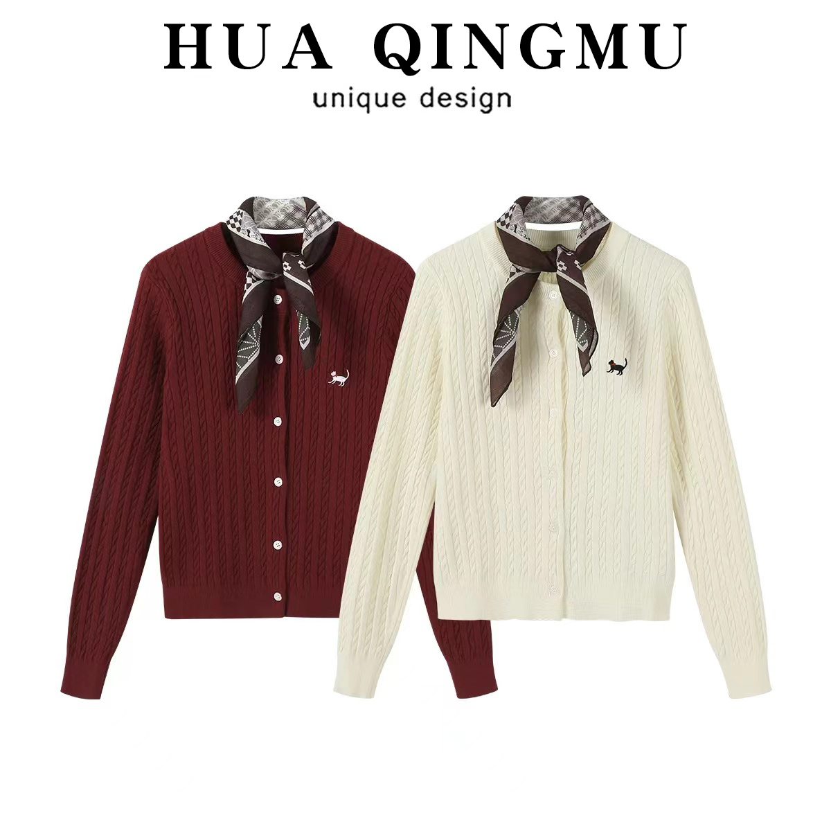 花倾慕秋冬新款安可拉红镇店爆款双股纱线麻花女士开衫外套6327