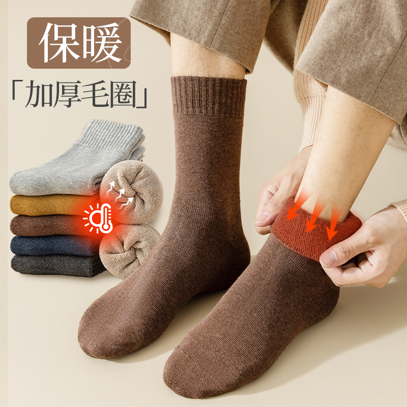 5双袜子男女款冬天中筒袜加厚加绒秋冬季毛圈袜保暖防臭吸汗长袜