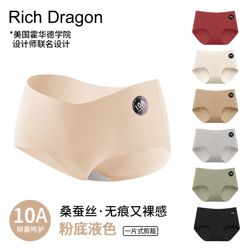 Rich Dragon红款10A抑菌桑蚕丝内裤欧若风纯色高弹中腰女士内裤