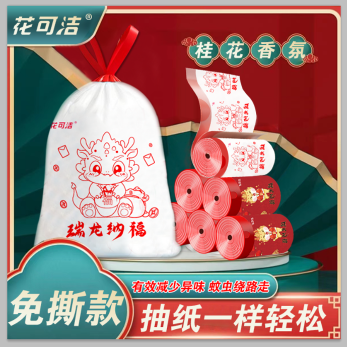 花可洁免斯抽绳垃圾钢袋桂花香氛手提式宿舍加大一次性干湿不脏手
