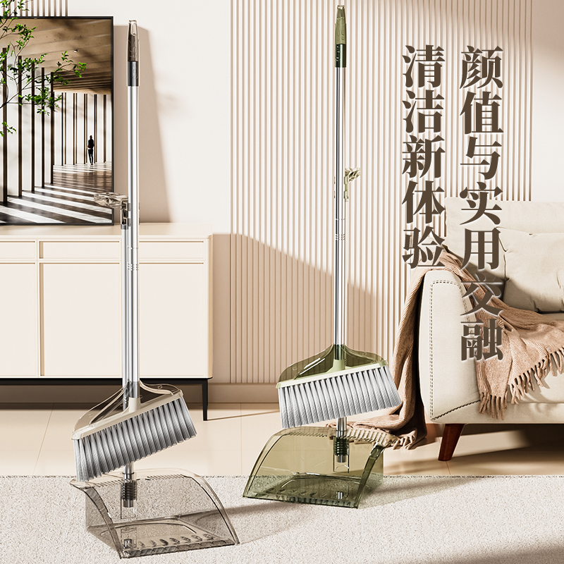 铂硕垃圾铲透明扫把簸箕套装畚斗加大干湿两用不锈钢防风组合笤帚