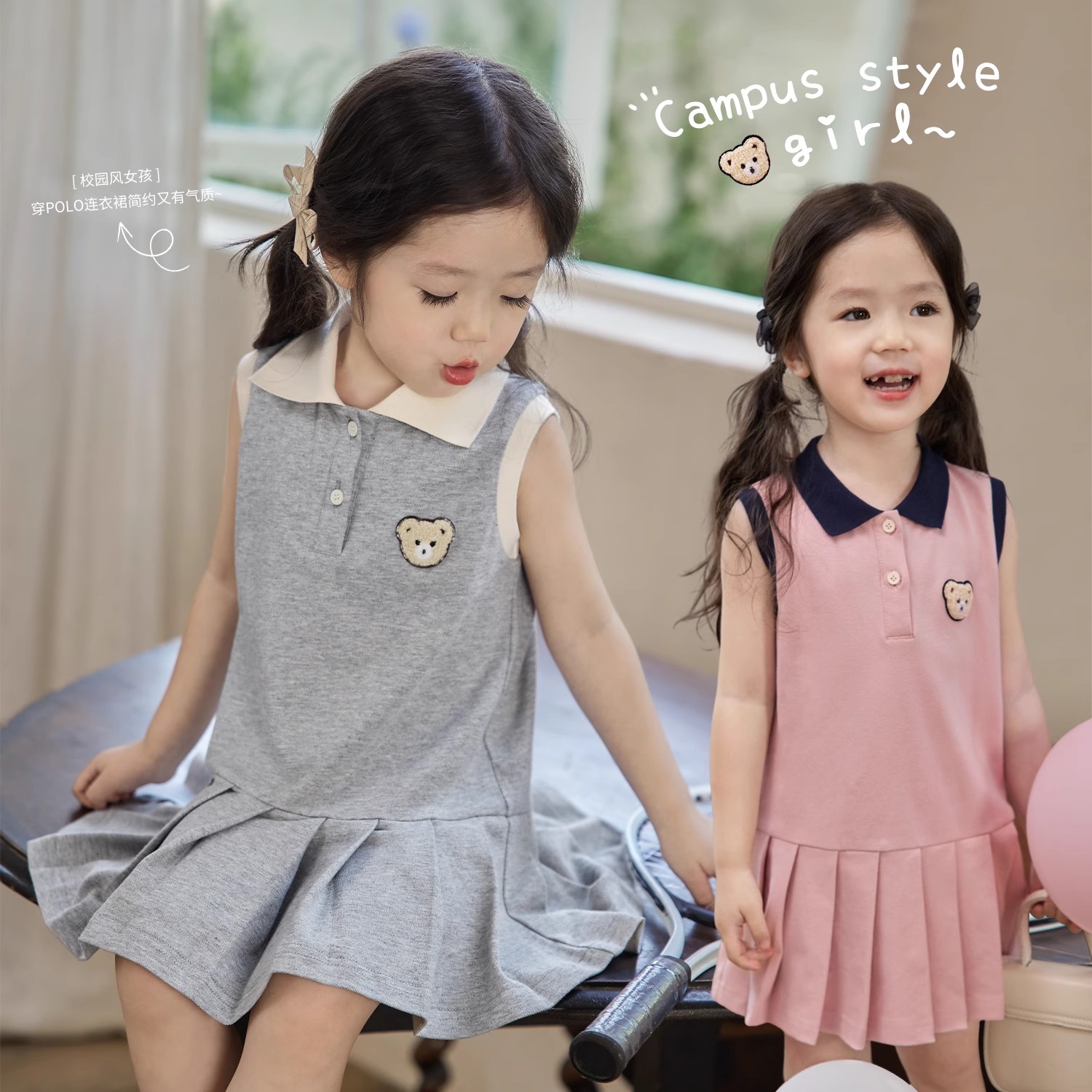 宝宝POLO连衣裙女学院风2025新款夏婴儿背心百褶公主裙网红赫本风