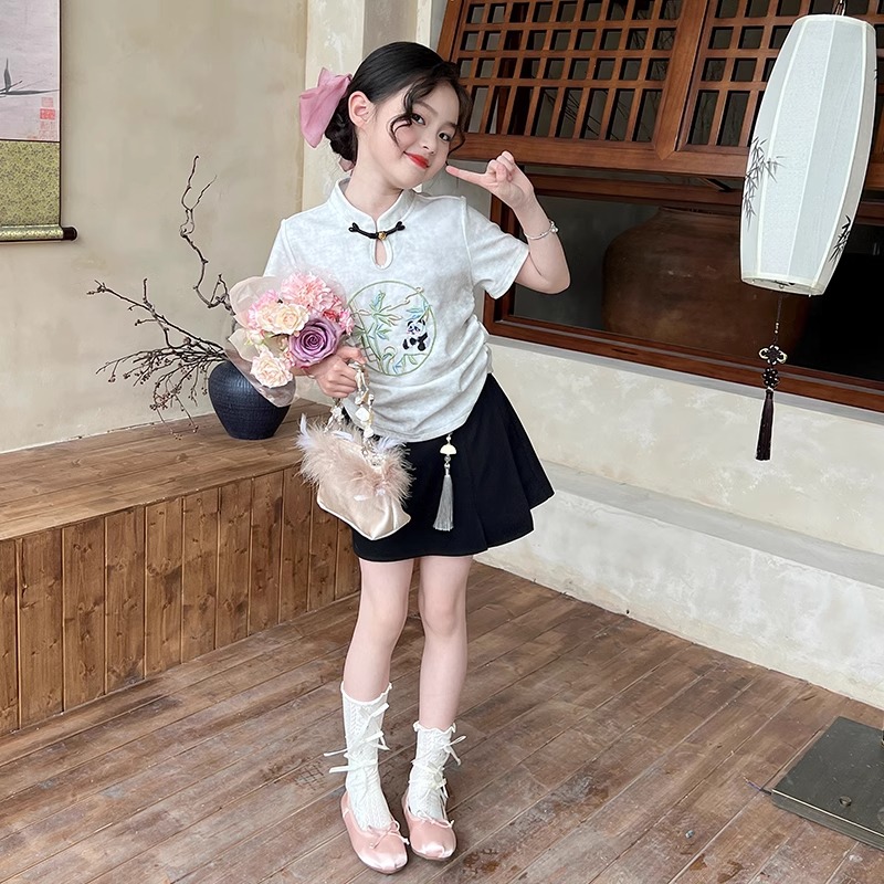 女童中式国风套装夏季2025新款儿童宝宝上衣短裙两件套小女孩夏装