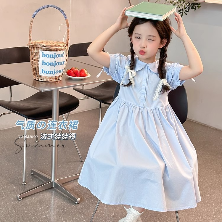 女童连衣裙2025夏季新款儿童娃娃领公主裙纯棉洋气夏装小女孩裙子