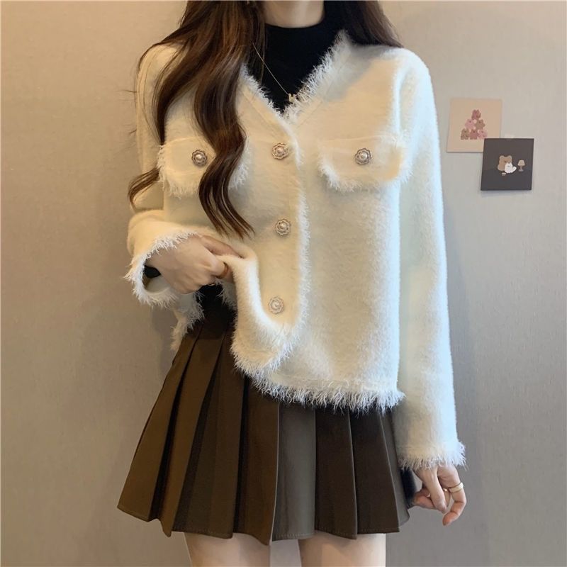 2178-仿水貂香风新款时尚百搭外套韩版宽松小个子轻奢开衫气质