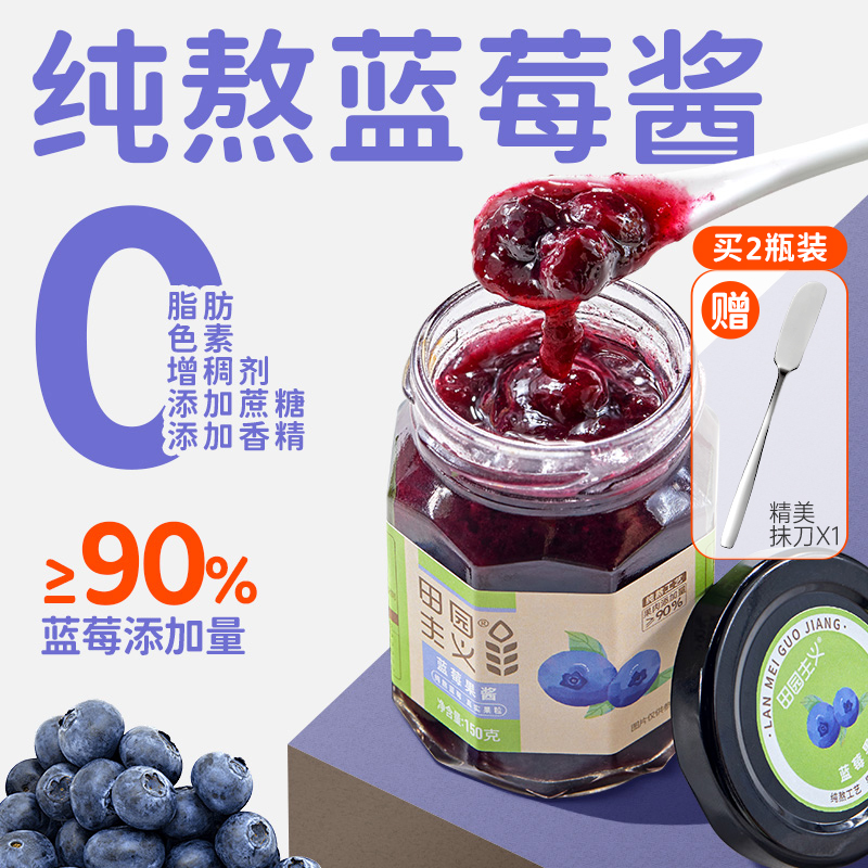 田园主义蓝莓果酱0脂肪不加蔗糖宝宝早餐草莓果肉吐司涂抹水果酱