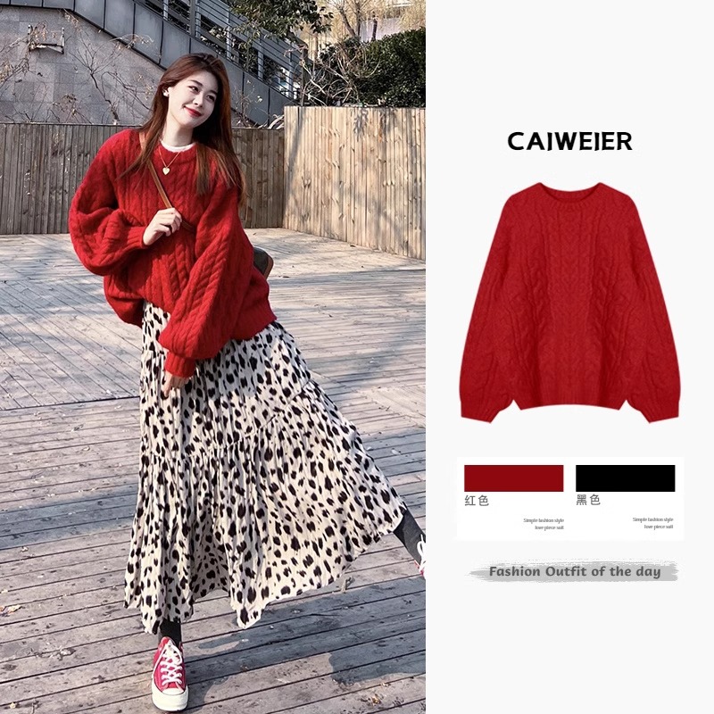 麻花软糯针织套头针织衫上衣慵懒风韩版宽松毛衣外套女大码秋冬季