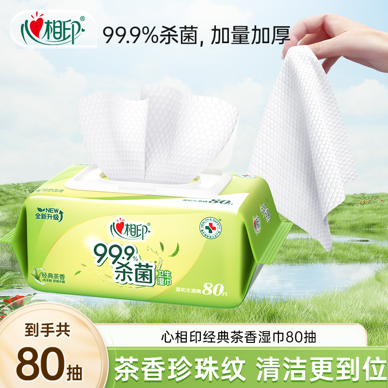 心相印卫生湿巾经典茶香80抽多规格清洁湿巾家用实惠装独立包装-d