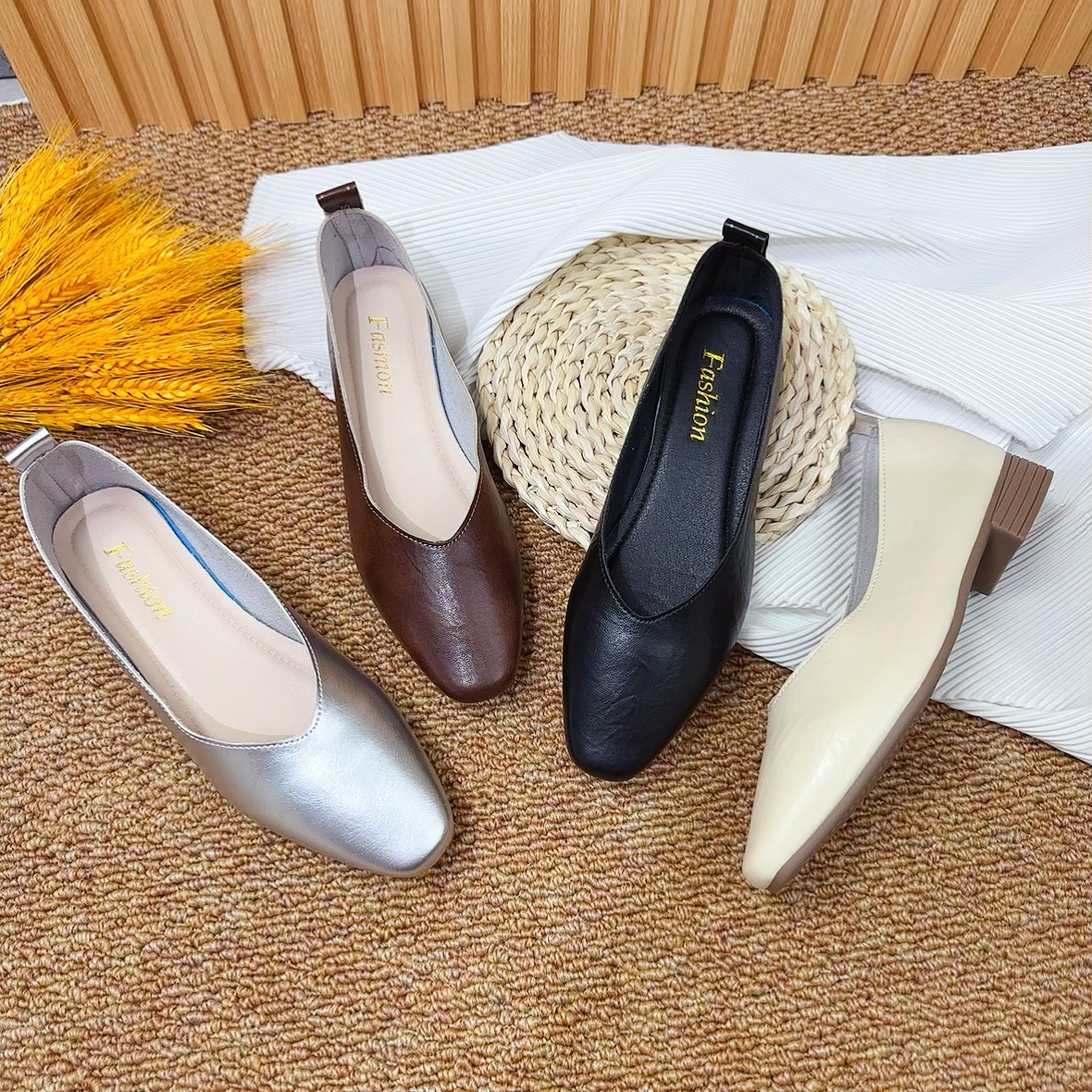【朵苮品牌】1方头单鞋2025低跟新款浅口气质百搭女春秋夏女鞋7878