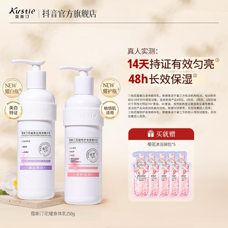 【商城超值】蔻斯汀花耀美白身体精华乳250g修护焕亮柔润保湿身体乳