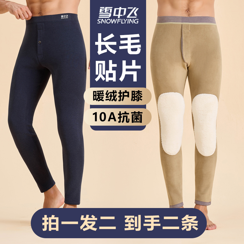 雪中飞冬季男士保暖裤羊毛蚕丝贴片护膝秋裤修身加绒男保暖长裤