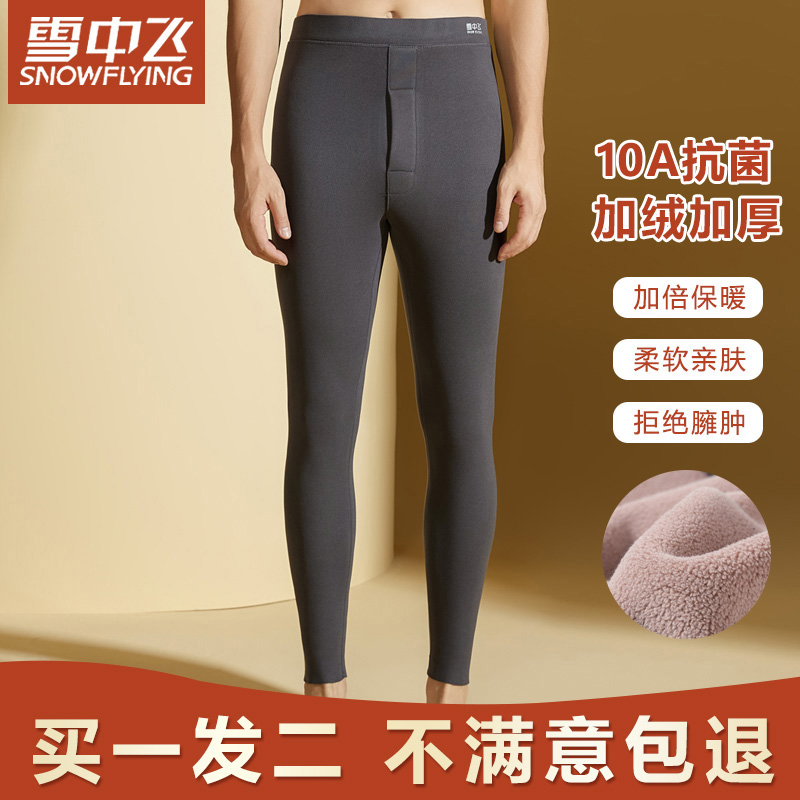 雪中飞冬季保暖裤亲肤柔软一体绒不掉裆无痕加绒加厚男士保暖裤