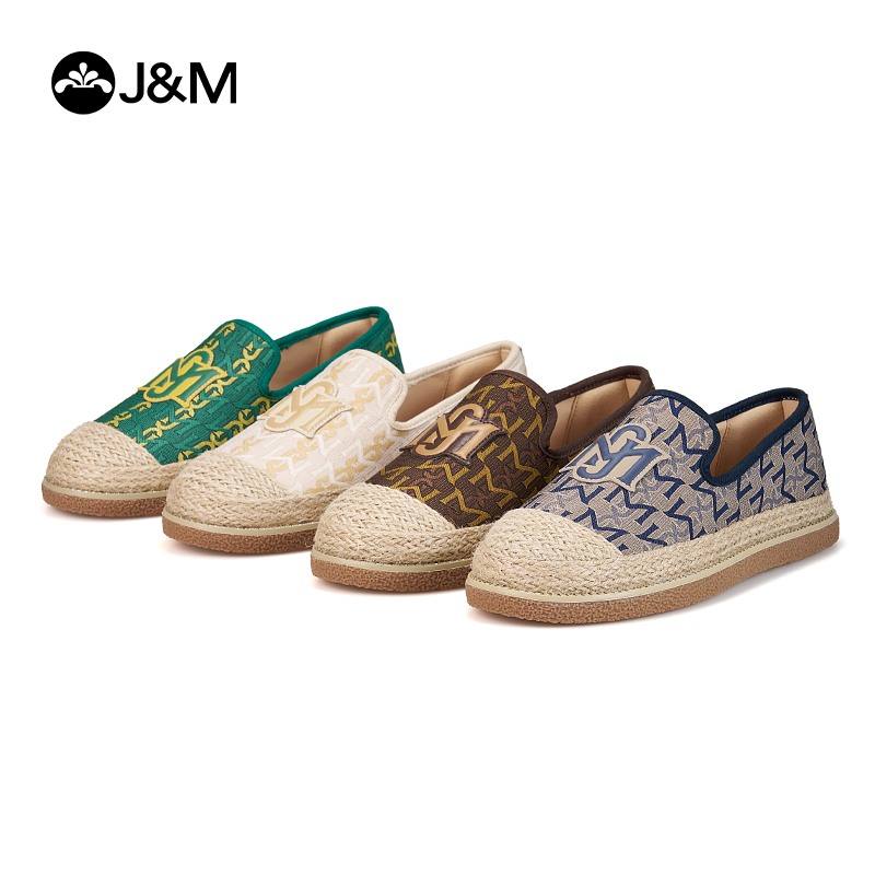 J&M/快乐玛丽老花渔夫鞋女手工草编鞋单鞋春夏百搭时尚复古69301W