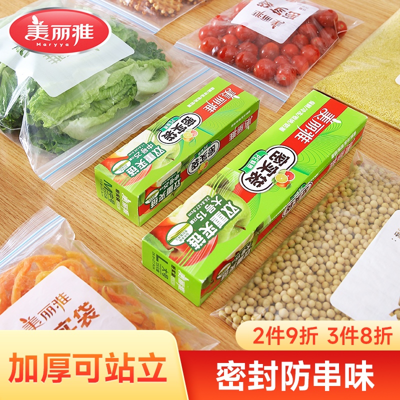 美丽雅双筋密封袋装果蔬家用加厚冰箱大号冷冻分装防潮串味封口袋