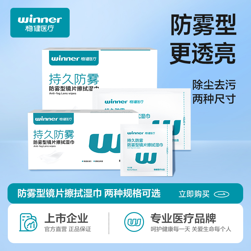 【直播】稳健Winner防雾型一次性镜片擦拭湿巾免洗清洁独立包装