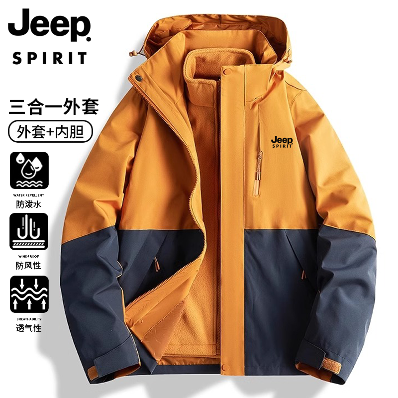 JEEP SPIRIT 吉普运动 保暖冲锋衣男女款可拆卸防风防水登山外套