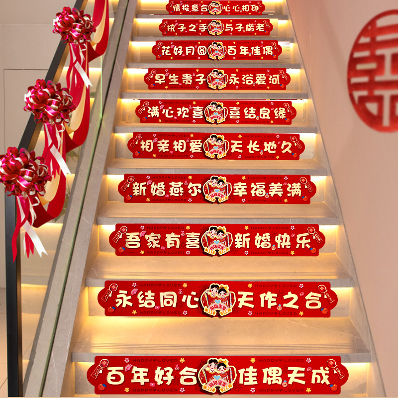 结婚楼梯台阶喜字贴创意踏步贴纸婚房布置装饰品全套喜庆婚庆用品