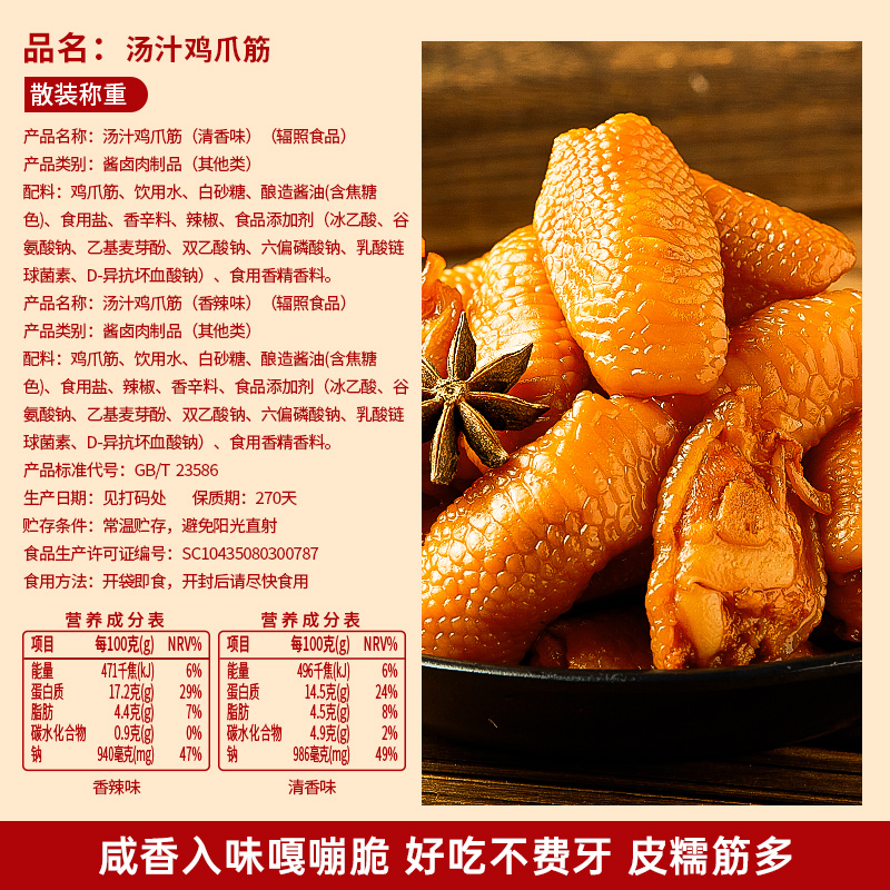 - ¥20.90 鸡脚筋清香+香辣【口味随机混发】,10只装